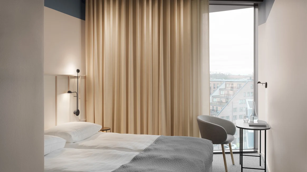 We offer personal service and 176 well-planned and stylishly designed rooms, with floor to ceiling windows. Some of our rooms are designed for longer stays and equipped with a personal kitchenette.